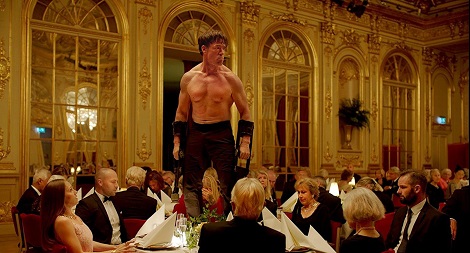 Nakon što su mu vraćene ukradene stvari, Christian se prepušta divljem provodu u taktu elektronske glazbe, vrlo blizu one u kojoj su uživali Jep i društvo – možda čak iste, da bi nakon toga razuzdano društvo preselilo u kraljevske prostorije zatvorene za javnost jer netko od sudionika zabave, poput Sorrentinovih likova, poznaje ključara antiknih prostorija te na kraju kustos, u Jepovoj maniri, završava u krevetu novinarke koja živi s bonobo majmunom. Muzej u kojem Christian uživa ugled dio je kraljevske palače – redatelj je iskoristio ozračje i ambijent Kraljevskog muzeja u Stockholmu. I Talijan i Šveđanin posežu za obrascem konceptualne umjetnosti kako bi se narugali duhovnim normama neoliberalnih zajednica. U oba slučaja, tik do konceptualne umjetnosti dječja je agresija, bijes ili plač.