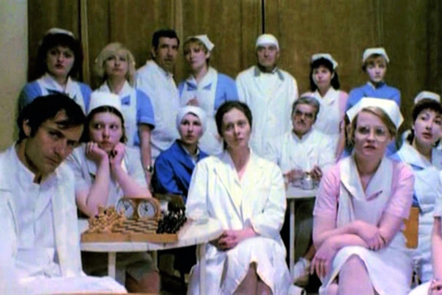 Nakon što je bolest donesena i suživi se s arealom Opšte bolnice u Beogradu, svjedočimo cijelom nizu detalja koji ocrtavaju to koliko je čovjek, zapravo, uvijek nespreman za takovu vrst kataklizme. Jer, epidemija doista spada u red onih prirodnih nepogoda poput potresa, poplave, požara. No, dok spomenute nepogode vidljivo putuju zemljom, vodom i vatrom, epidemija dolazi gotovo nevidljivo, putem zraka. Radi se o nečem što nevidljivo – udahnemo. Upravo je ta nevidljivost temeljni čimbenik horora u svemu ovome. Ipak, postoje dosta velike razlike u samom vizualnom izgledu razvoja bolesti između velikih boginja (variole vere) i Covida-19 (corona virusa). Naime, bolest prikazana u Markovićevu filmu puno je, naizgled, strašnija. Velike ospe prekrivaju lica zaraženih, oni stalno zapomažu, urlaju ili ječe, pljuju i povraćaju krv, a grčevi stalno potresaju tijelo. (Što opet ne znači da i unutrašnje djelovanje Covida nije užasno!) Kako se u svemu ovome ponašaju ljudi suočeni s pojavom epidemije? Rekao bih…ljudski. I dok neki poput upravitelja bolnice Čoleta (Rade Marković) skrivaju cjepivo od pacijenata za sebe, drugi pokazuju strah, ali i odlučnost da pomognu drugima, poput doktorke Marković (Dušica Žegarac). Ona, iako boluje od preosjetljivosti miokarda, dragovoljno uzima cjepivo kako bi se uključila u ekipu koja pomaže zaraženima.