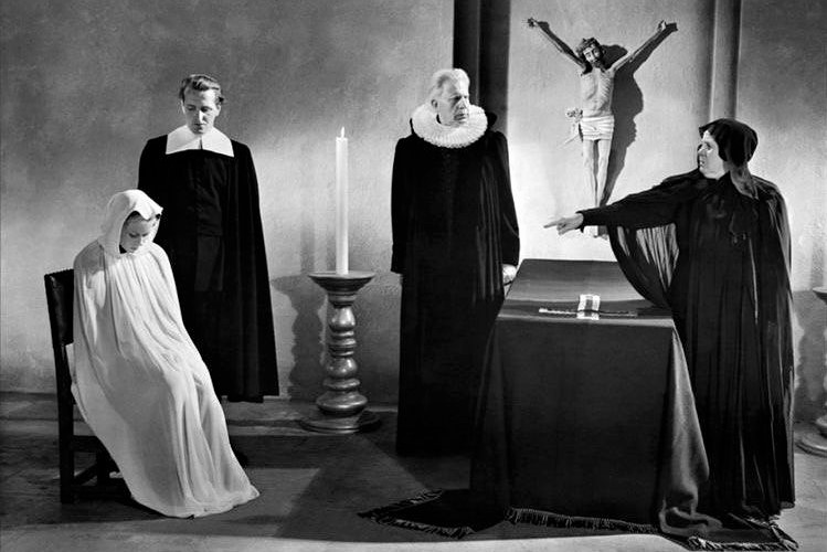 Tako naizgled deziluziorani, od realnosti detačirani junak Riječi (1955) nadilazi religijske diferencijacije i pukom purilnošću manifestira čudesno, a nadosjetilne posebitosti podcrtavaju se dihotomijama razum i ludilo, religija i duhovnost, prizemno i transcendentno. Teokratska hijerokracija i paranoidni lov na vještice, s duboko disturbivnim scenama tortura, bazični su motivi i u Danu gnjeva (1943) i Stradanju Ivane Orleanske (1928), dramatičnim tenzičnim krupnim kadrovima lica sugerirajući i prodirući u duševne procese svojih karaktera; nepravedna smrt poput ominozne kletve lebdi nad svakim kadrom Dana gnjeva, neovisno je li riječ o hermetičnim, sjenama bremenitim, opskurnim interijerima kao doslovnim zatvorima svojih nastavatelja ili kontrastnoj dnevnoj pastoralnoj bujnosti eksterijerne prirode.