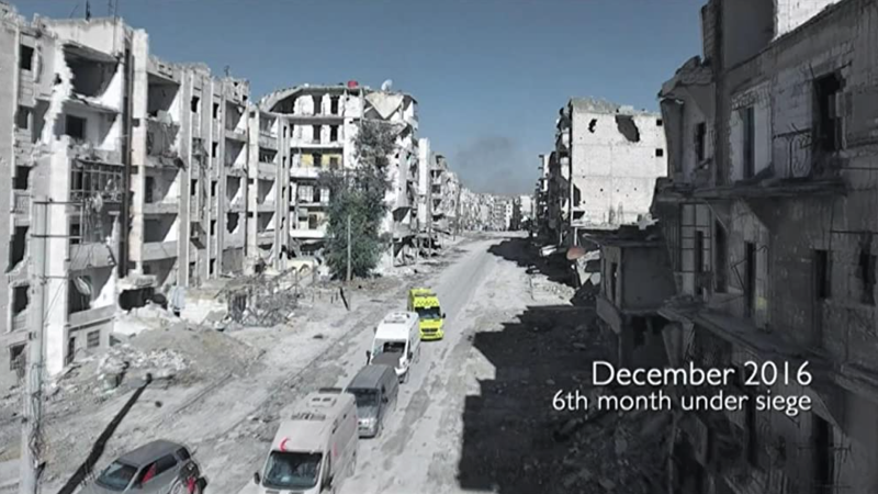 Kroz cijeli film, u konstantnoj su naizmjeničnosti trenuci naoko normalnoga života u pobunjeničkom gradu te trenuci kaosa, bombardiranja i uzbune. Takva konstrukcija naracije donijela je svojevrsnu dinamiku priče. Waada al-Kateab ujedno je i naratorica te snima kamerom sve što se događa, a povremenom ulogu naratora preuzimaju i snimani sugovornici kad sudjeluju u razgovoru i iznose svoja razmišljanja, stavove i osjećaje glede situacije u kojoj se nalaze i života u takvoj situaciji.Trenuci Waade sa suprugom liječnikom, no i trenuci sa snimanim sugovornicima, potpuna su opozicija trenutnoj i neizvjesnoj situaciji u kojoj se nalaze. Upravo oni dokaz su i pokazatelj kako usprkos stalno prisutnim zvukovima bombardiranja i rušenja infrastrukture grada, Waada, njezin muž i ostali sugovornici ipak uspijevaju koliko-toliko ostati pribrani i staloženi. Miješanjem ozbiljnog tona i onog jednostavnog, životnog i svima znanog, moglo bi se i reći kako se doima da su likovi već pomalo otupjeli na zvukove vojnih aviona, bombardiranja i zvukove zapomaganja ranjenih. No, naučili su živjeti u situaciji koju sami nisu odabrali nego im je nametnuta zbog pobuna te ruskih aviona koji nadziru nebo nad gradom.