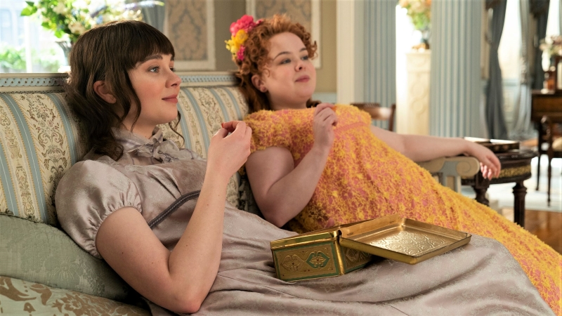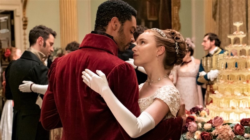 Pritom odlazi korak dalje, na sve znane nabrojane trope nakalemivši suvremene idiome i stvorivši eklektički anakronistički coming-of-ager u kojem skladno u harmoniji, kao u svojevrsnoj alternativnoj stvarnosti, pod pronicljivim okom tračerice Lady Whistledown, koegzistiraju, po race-blind casting ključu, razne rase, na balovima elegantnoj društvenoj kremi orkestar svira Billie Eilish, a progresivne tinejdžerice-feministice psuju i puše cigarete (takvim postupcima podsjećajući na još jedan zanimljiv i hrabar, uspješan iskorak jukstapozicioniranja naizgled nespojivog - Ponos i predrasude i zombiji /Pride and Prejudice and Zombies, 2016/ Burra Steersa).