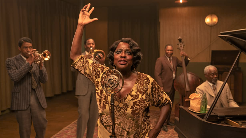 Razgovori se dotiču raznih tema – u rasponu od glazbe pa do osobnih trauma, no često u podtekstu otkrivaju rasnu problematiku. Jedan od najupečatljivijih je kada Levee, inače svojevrsna crna ovca u bendu, a koji mašta o osnivanju vlastitoga sastava, otkriva obiteljsku tragediju. Spomenuto strukturiranje prvih tridesetak minuta omogućuje i glumcima da se iskažu pa je redatelj veliku pomoć imao od Michaela Pottisa, Colmana Dominga, Glynna Turmana te napose pokojnoga Chadwicka Bosemana (Black Panther), koji je posthumno za ulogu osvojio Zlatni globus u kategoriji najboljega glavnoga dramskoga glumca.Wolfe vješto slaže priču, pa nas kroz prvu trećinu uvodi u kontekst, a potom predstavlja naslovnu protagonisticu, koju je gledatelj tek sporadično mogao vidjeti, mahom u situacijama koje otvaraju rasnu problematiku. Iako neosporno velika zvijezda te financijski potkovana, bjelačka klijentela hotela u kojem je odsjela gleda je s podozrenjem, što dodatno biva zaoštreno sukobom s policajcem na ulici zbog sudara koji je prouzročio njezin nećak Sylvester (Dusan Brown). Pitom je Viola Davis (Widows, Suicade Squad) odlično utjelovila glazbenicu te svojom pojavom suvereno dominira filmom. Njezina kreacija otkriva da je goropadna površina zapravo uspješan obrambeni mehanizam stvoren kao protuteža bjelačkom rasizmu. Ma Rainey tretira bijelce oko sebe – u rasponu od menadžera, preko Sturdyvanta do policajca, kao što bijelci tretiraju nju i njezine sunarodnjake.