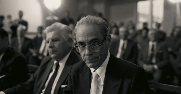 Treća narativna linija također je smještena u narativnu sadašnjost te prikazuje saslušanje Lewisa Straussa (Robert Downey Jr.) pred američkim Senatom, koji preispituje njegovu nominaciju za ministra trgovine (predložio ga je predsjednik Dwight D. Eisenhower), što je trebala postati kruna njegove duge karijere. Poigravanje triju narativnih linija Nolanu omogućuje da rekonstruira profesionalnu i privatnu biografiju Oppenheimera, ali i da priču postavi kao uzbudljiv politički triler jer su prve dvije i treća narativna linija postavljene u odnos tenzije. Film gledatelja tretira kao da ne zna tko je prijavio znanstvenika za protudomovinsko djelovanje pa je posrijedi pravi mali triler koji progovara o raznim sredstvima manipulacije, osobnim ambicijama te sitnim dušama. Tri su narativne linije ujedno stilski diferencirane. Prva počiva na dinamičnoj međuigri suprotstavljenih strana i iskazivanju moći, što Nolan vješto postavlja smještajući radnju u skučenu prostoriju koja odiše klaustrofobijom. Druga narativna linija retardira prvu te dozirano otkriva aspekte protagonistove prošlosti, a njezini najuspjeliji segmenti otpadaju na trenutke u kojima redatelj nastoji ući u svijest lika. Treća je oneobičajena tako što je snimana u crno-bijeloj tehnici, čime odudara od ostatka filma, a sadrži štih dokumentarističnosti ali i starih holivudskih filmova.
