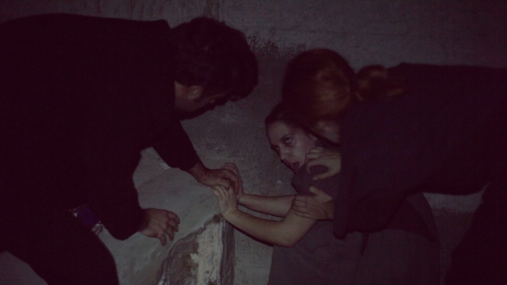 Ta dinamična napetica u tri čina (Religija, Sotonizam, Ljudi) gledatelje pretvara u nazočitelje činu istjerivanja vraga nad djevojkom (nevjerojatno uvjerljiva i transformativna debitantica Nika Ivančić), uz sve ostale dramatis personae: fanatično rigidnu sestru Veru (jako dobra Helena Minić Matanić), ožalošćenu psihijatricu-sotonisticu (pouzdana Senka Bulić), ambicioznu beskrupuloznu novinarku (Lana Gojak) te skeptično-iznurena svećenika (solidan Janko Popović Volarić), poglavito uzme li se u obzir redateljev postupak korištenja kamere i video-walla pri ghostbusterskom found-footage lovu na paranormalno, izmještenom sa scene u podrumske koridore INK-a, a što publika prati na rečenom ekranu kao real-time projiciranu streaming-snimku s kamere lika televizijskog snimatelja (interpretacija Marka Braića).