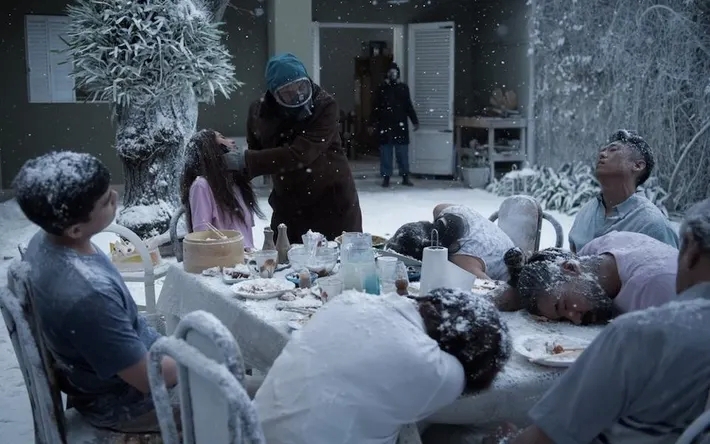 U šest nastavaka različitih duljina trajanja priča je skladno postavljena te promišljeno i efektno raščlanjena. Prvi segment obuhvaća pojavu snijega te spoznaju o postojanju neobičnih bića, nalik na gigantske insekte. Protagonisti putem vlastitoga znanja, iskustva i logičkoga zaključivanja počinju razumijevati narav događaja oko njih. Autori uspijevaju izvrsno postaviti komornu i glacijalnu atmosferu, a posebice je efektno dočarano Salvovo lutanje snježnim i samotnim ulicama Buenos Airesa. Prvotna izoliranost protagonista biva nadomještena povezivanjem s ostalim preživjelima u trgovačkom centru, nakon što odluče napustiti kuću. Trenutak je to i kada radioaktivni snijeg prestaje padati. Vizualno se situacija mijenja: od bezlične bjeline i sivila, s pojavom sunca i tipičnoga izgleda neba, osvjetljenje postaje nalik prirodnom te sugerira mogućnost da se život vrati u normalu, što rezultira valom optimizma. Središnji je segment efektno postavljen kao svojevrsni predah između iznenađujućih događaja u prvome dijelu te onoga što će uslijediti u posljednjoj trećini. Vještim dizajnom zvuka te specifičnim načinom kadriranja situaciji se pridaje nota anksioznosti. Život kao da se vraća u normalu, no istodobno smo svjesni da nešto nije kako bi trebalo biti, što je napose signalizirano pojavom ljudi koji bezrazložno pucaju po preživjelima.