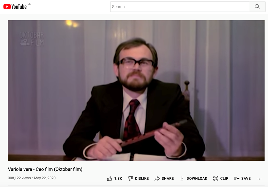 It is worth noting that the only element Another Spring does not borrow from Variola Vera (1982) is the sexual one. Variola Vera included several workplace sex scenes — often reproducing conventional gender hierarchies (male doctor, female nurse) — reminiscent of another late socialist epidemic film, Věra Chytilová’s HIV tragicomedy Kopytem sem, kopytem tam (Tainted Horseplay, ČSSR, 1988). Both feature films offered political critiques of socialist societies and how they mismanaged crises, often resorting to information embargoes: whether during the 1972 smallpox outbreak in Yugoslavia (reportedly to protect the tourist season) or the nuclear disaster at Chornobyl’ in the USSR. In both cases, concealment became untenable once foreign observers gained access to data — be it infection rates or radioactive fallout. Another Spring does not achieve any critique of that kind.